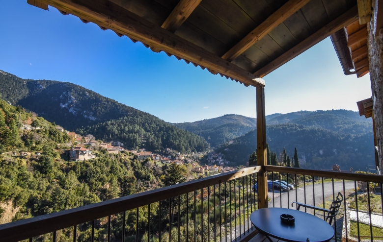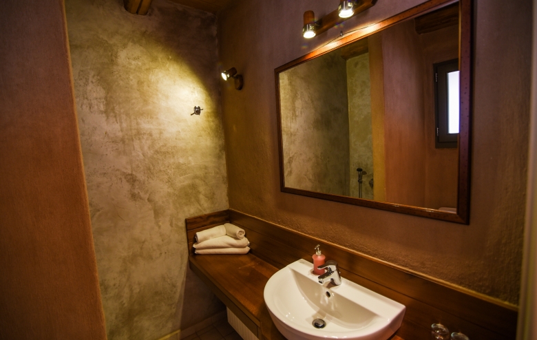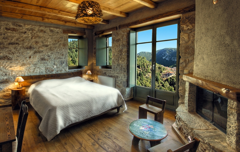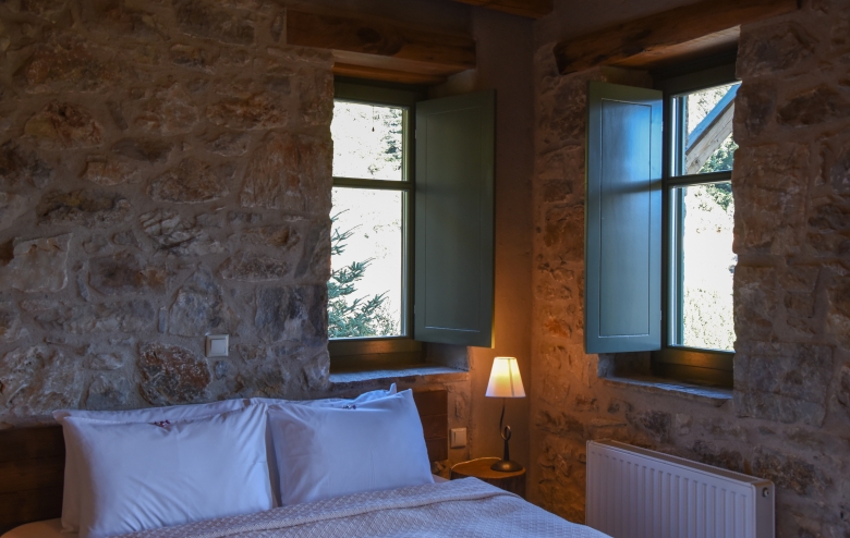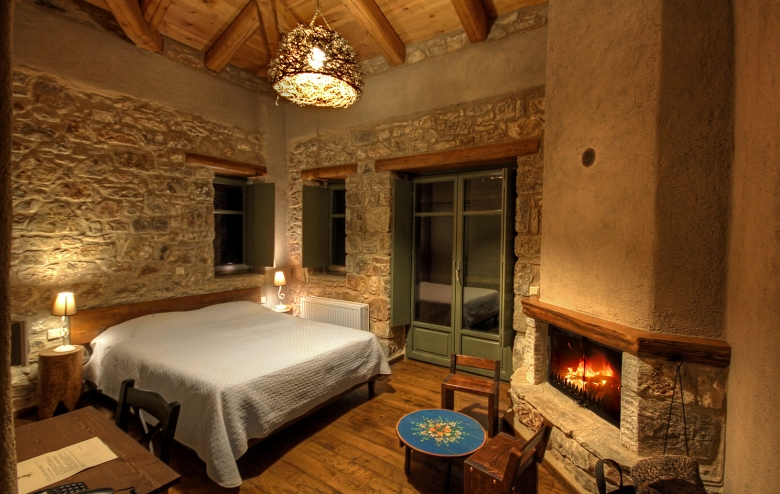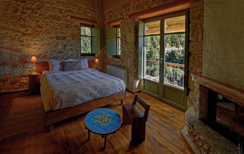 Δίκλινο, με διπλό κρεβάτι. Με μια διπλή εσωτερική πόρτα υπάρχει δυνατότητα να ενωθεί με το διπλανό δίκλινο και να μετατραπεί έτσι σε δίχωρο τετράκλινο. Στη γωνία του δωματίου υπάρχει ενεργειακό τζάκι για ζεστές στιγμές. Στο ξύλινο μπαλκόνι ο επισκέπτης θα περάσει ώρες χαλάρωσης, με συντροφιά τον ήχο του νερού από τη διπλανή ρεματιά. |